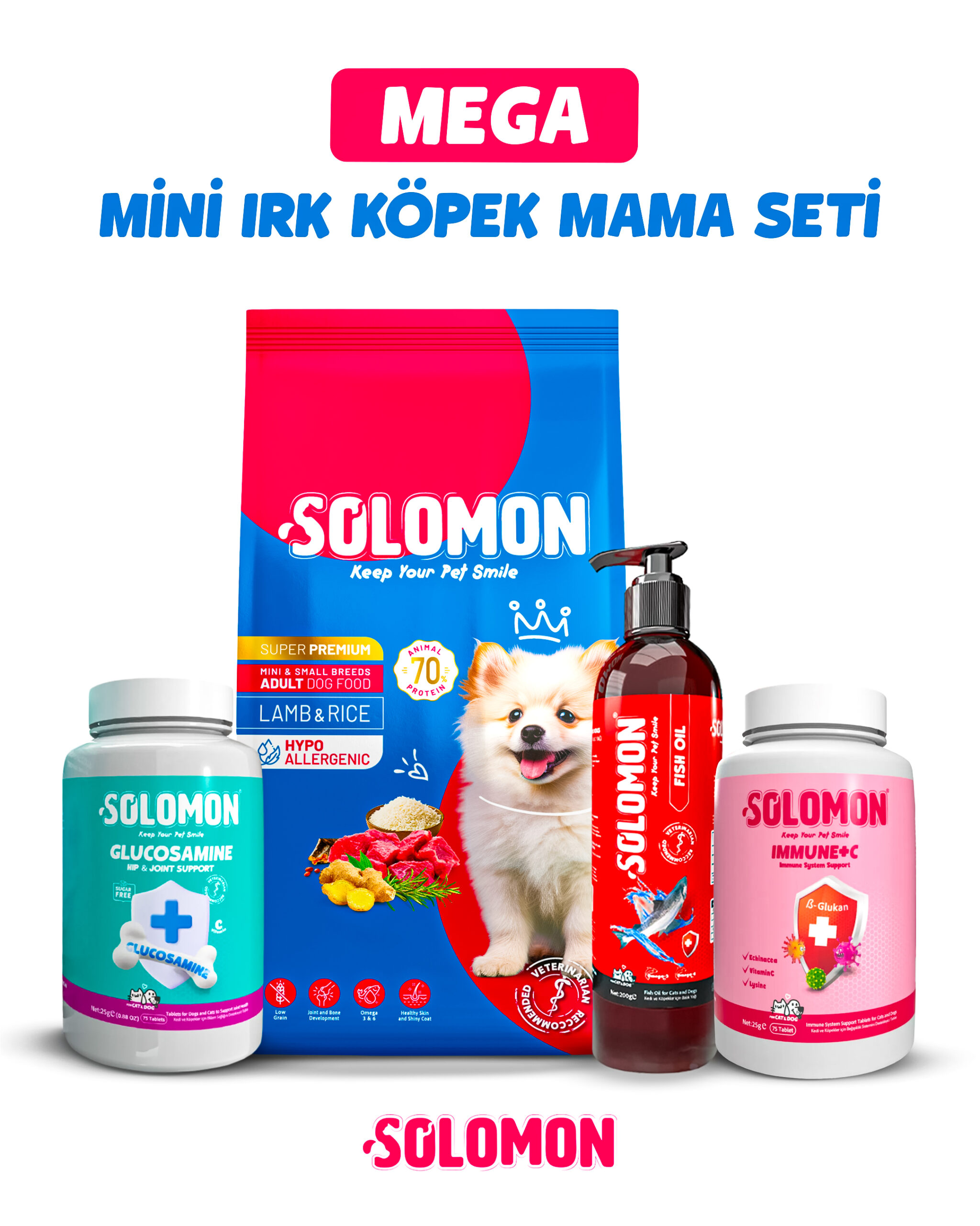 Solomon Süper Premium Ufak Irk Köpek Maması, küçük dostlarınızın sağlıklı, mutlu ve enerjik bir yaşam sürmesi için özel olarak formüle edilmiştir. İçeriğindeki yüksek kaliteli